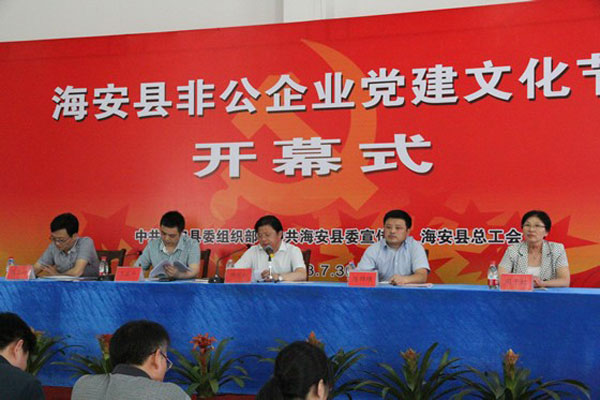 目前,我縣共有非公企業(yè)2998家,從業(yè)人員14.9萬人,非公企業(yè)黨組織總體組建率達(dá)98.6%。近年來,我縣不斷探索創(chuàng)新非公企業(yè)黨建文化工作,548家規(guī)模企業(yè)提煉形成獨(dú)特的企業(yè)精神,46家企業(yè)創(chuàng)辦內(nèi)刊,《中洋報》被評為省十佳企業(yè)期刊,《海迅之歌》被評為省十大企業(yè)金曲,并打造了海迅集團(tuán)“家”文化,鑫緣集團(tuán)“精品人品同在,誠信創(chuàng)新永恒”價值觀等一批黨建文化品牌。雙弘紡織黨支部被表彰為全國創(chuàng)先爭優(yōu)先進(jìn)基層黨組織,海安高新區(qū)等被表彰為省“四統(tǒng)籌一創(chuàng)爭”示范單位。