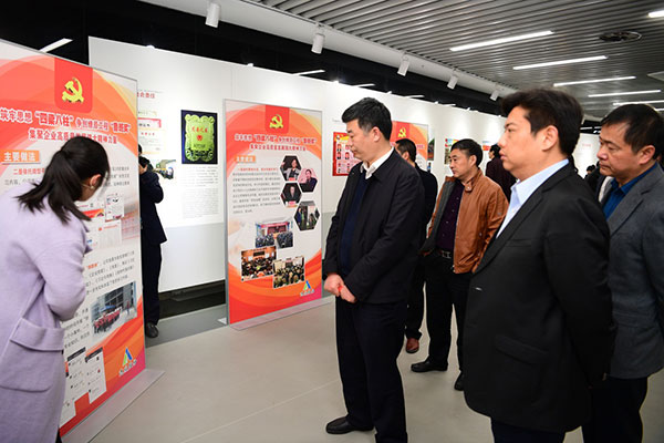 在達欣集團企業(yè)展示中心,嚴長江一行參觀了“筑牢思想‘四梁八柱’ 爭創(chuàng)燎原工程‘魯班獎’”主題展板,詳細了解了企業(yè)黨員冬訓(xùn)工作開展情況,對黨建工作的創(chuàng)新做法給予了肯定。集團董事長、黨委副書記馬和軍陪同參觀。