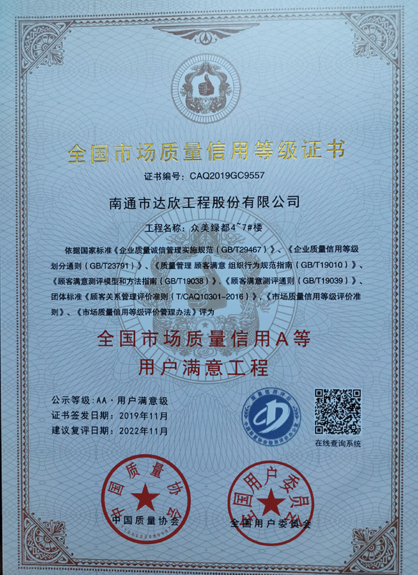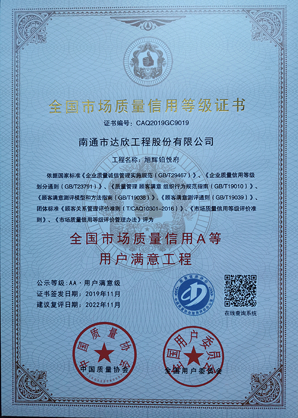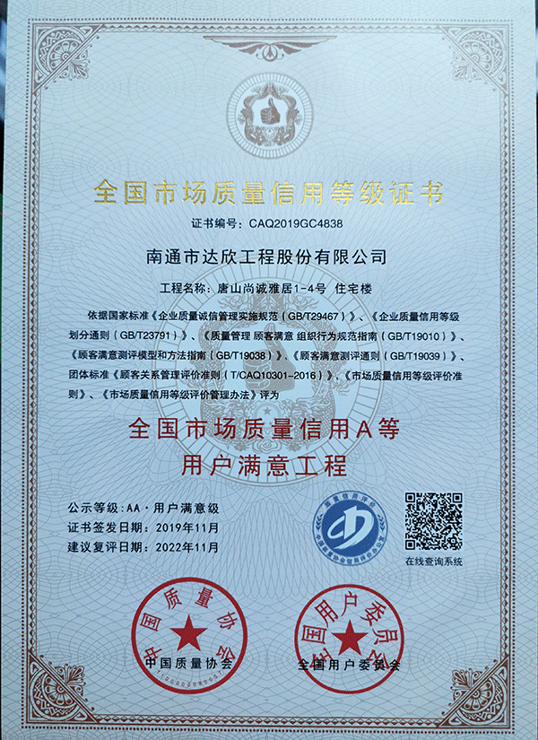 一舉獲得三項殊榮不僅僅是向外界展示了達(dá)欣集團在工程建設(shè)上的技術(shù)實力和精品工程信譽度,更是達(dá)欣集團在工程建設(shè)中以“質(zhì)量贏得市場,使企業(yè)建立較強的市場競爭力”。
