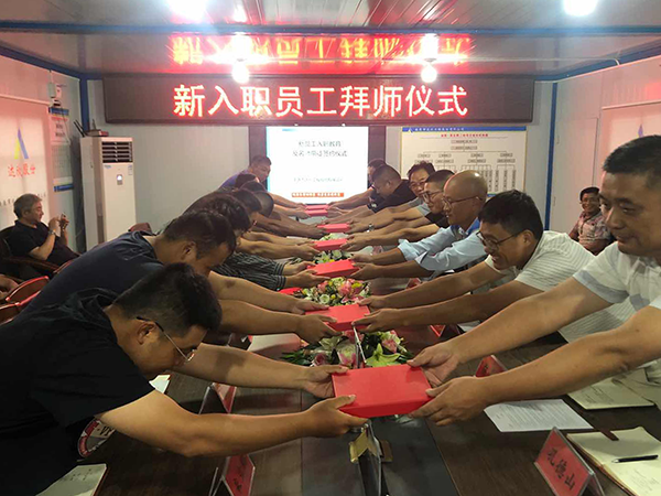 活動開始,大家首先觀看了集團企業(yè)宣傳片,新員工對達欣有了更深刻的認識,老員工們重溫企業(yè)的文化、定位以及發(fā)展目標。工程公司人事負責(zé)人倪慶龍宣讀了師徒協(xié)議,師傅和學(xué)徒們了解了本次拜師會的目的和意義,同時也明確了今后在崗位上努力的方向。