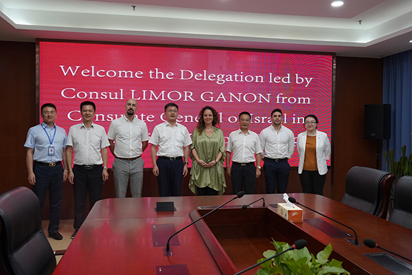 8月4日下午,以色列駐上??傤I(lǐng)事館領(lǐng)事葛麗茉L(fǎng)IMOR GANON、總領(lǐng)事高級(jí)顧問(wèn)尤西YOSSI BEN SHITRIT、領(lǐng)事助理JOSEPH ALFASA 、喬瑩青、陸彥璇一行蒞臨集團(tuán)進(jìn)行商務(wù)訪(fǎng)問(wèn)。海安市副市長(zhǎng)張?jiān)?,海安市商?wù)局副局長(zhǎng)史遐兵,集團(tuán)黨委書(shū)記、副董事長(zhǎng)劉厚純,常務(wù)副總經(jīng)理王邦國(guó)陪同接待。