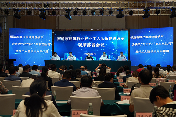 9月17日上午,南通市建筑行業(yè)產(chǎn)業(yè)工人隊伍建設(shè)改革觀摩部署會在達欣集團舉行。南通市總工會黨組書記、副主席、產(chǎn)業(yè)工人隊伍建設(shè)改革聯(lián)席會議辦公室主任葛志娟,南通市住房和城鄉(xiāng)建設(shè)局黨組副書記、副局長、一級調(diào)研員沈衛(wèi)星,南通市總工會四級調(diào)研員楊紅衛(wèi);各(縣)市、區(qū)總工會領(lǐng)導(dǎo)、勞動和經(jīng)濟工作部部長,以及南通市建筑施工特級資質(zhì)企業(yè)、海安市建筑施工一級資質(zhì)企業(yè)負責(zé)產(chǎn)改的主要領(lǐng)導(dǎo)等120多人參加觀摩會。海安市委常委、組織部部長、統(tǒng)戰(zhàn)部部長張明星,海安市政協(xié)副主席、總工會主席李如生;海安市總工會黨組書記、副主席柴寶清,海安市建管局局長賈伯根等陪同參加;集團董事長馬和軍,黨委書記劉厚純,副總經(jīng)理、工會主席溫鶴華參加活動。