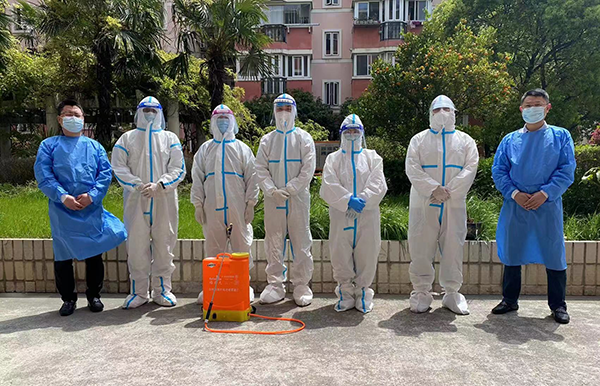 在社區(qū)的統(tǒng)一安排下,志愿者們變身“大白”,迅速加入抗疫行動中,對整個小區(qū)進行不留死角、全方位的消殺工作,以及小區(qū)居民日常生活物資的搬運發(fā)放等工作。志愿者們不辭辛苦、任勞任怨,充分展現(xiàn)了達欣人勇于擔(dān)當(dāng)、無私奉獻的精神。
