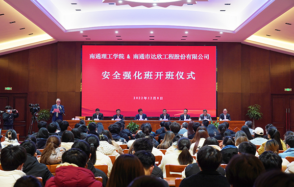12月8日下午,南通理工學(xué)院-達(dá)欣集團(tuán)校企合作“安全強(qiáng)化班”開班儀式,在南通理工學(xué)院海安校區(qū)舉行。南通理工學(xué)院董事長(zhǎng)陳明宇,黨委副書記、海安校區(qū)黨工委書記、管委會(huì)副主任周宗泉,校長(zhǎng)助理、海安校區(qū)管委會(huì)副主任謝衛(wèi)軍等校領(lǐng)導(dǎo);達(dá)欣集團(tuán)董事長(zhǎng)馬和軍,黨委書記劉厚純,常務(wù)副總經(jīng)理王邦國(guó),副總經(jīng)理、安全總監(jiān)、工會(huì)主席溫鶴華等出席活動(dòng)。南通理工學(xué)院建筑工程學(xué)院院長(zhǎng)、黨總支書記劉榮桂主持會(huì)議。
