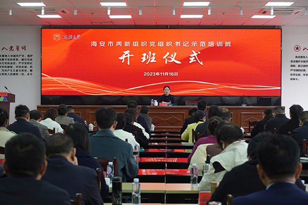 11月16日,全市兩新組織黨組織書記示范培訓班開班儀式在達欣集團舉行,海安市委組織部常務(wù)副部長、“兩新”工委書記、黨建辦主任吳蘭,各區(qū)鎮(zhèn)街道組織委員、培訓班全體學員、高新區(qū)兩新組織黨組織書記代表等100多人出席活動。集團在海領(lǐng)導馬和軍、杭小建、劉厚純參加活動。