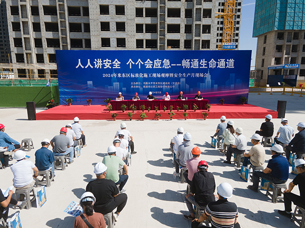 6月20日,由烏魯木齊市米東區(qū)建設(shè)局主辦的2024年米東區(qū)標(biāo)準(zhǔn)化施工現(xiàn)場(chǎng)觀摩暨安全生產(chǎn)月現(xiàn)場(chǎng)會(huì)在第十一工程公司承建的會(huì)展吾悅廣場(chǎng)五期項(xiàng)目舉行。米東區(qū)副區(qū)長(zhǎng)馬連營(yíng),區(qū)應(yīng)急管理局局長(zhǎng)鄒波,區(qū)建設(shè)局局長(zhǎng)、黨組副書(shū)記姜磊;卡子灣街道辦事處主任周疆艷,區(qū)質(zhì)量安全監(jiān)督站站長(zhǎng)宮強(qiáng),區(qū)質(zhì)量安全監(jiān)督站全體工作人員,第三方專家以及全區(qū)建設(shè)、監(jiān)理、施工單位負(fù)責(zé)人共計(jì)200余人、60多家建筑施工單位代表參加了此次觀摩會(huì)。