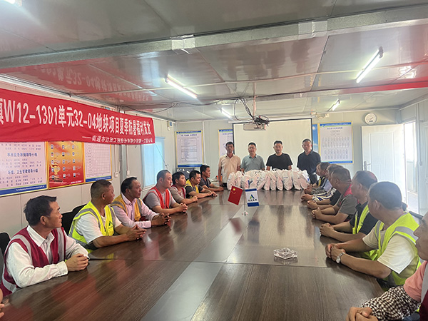 活動現(xiàn)場,第一工程公司總經(jīng)理倪志榮、副總經(jīng)理朱國華、安全科科長姜德穩(wěn)、項目經(jīng)理周進均,將防暑降溫物資逐一發(fā)放到職工手中。此舉不僅為職工提供了實用保障,更傳遞了公司以人為本的發(fā)展理念。