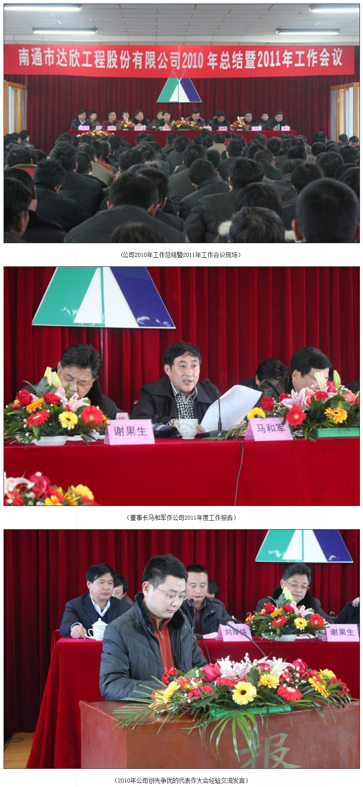 彩旗飄展,鞭炮齊鳴,南通市達欣工程股份有限公司2010年總結(jié)暨2011年工作會議于2月8日下午1:30分隆重開幕。
