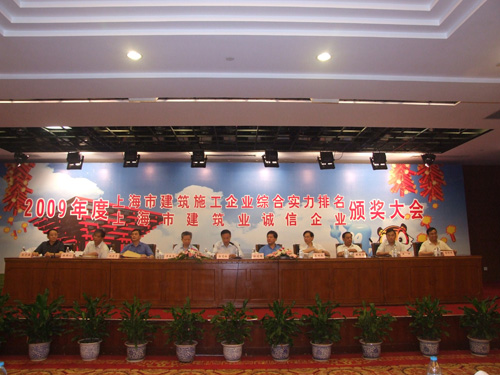 2010年7月30日,2009年度上海市建筑施工企業(yè)綜合實力及上海市建筑業(yè)誠信企業(yè)頒獎大會在青松城會議中心召開。出席會議的有上海市建委、上海市建管辦、市場管理總站、施工行業(yè)協(xié)會、各省滬辦領導以及獲獎企業(yè)共四百多人參加。