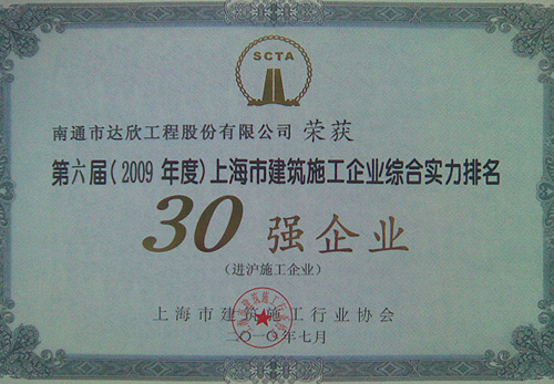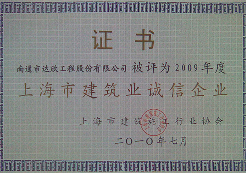 達欣股份首次挺進進滬施工企業(yè)前30強(進滬施工的江蘇企業(yè)僅有八家),這標志著公司跨入了進滬強企的第一方陣,標志著公司進滬施工進入了新階段!同時公司還再次榮獲了“上海市建筑業(yè)誠信企業(yè)”稱號。上海市的主流媒體“解放日報”、行業(yè)報刊“建筑時報”均予以報導。