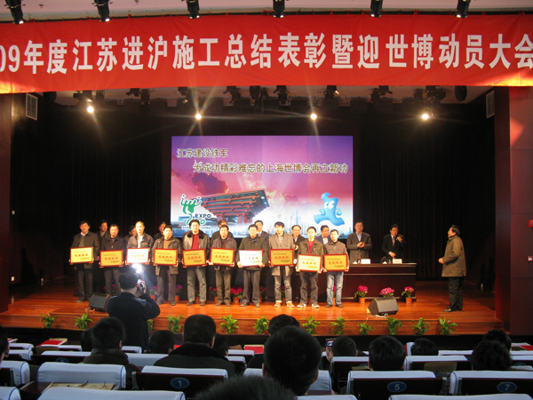 三月十日,江蘇省人民政府駐滬辦、江蘇省建筑工程管理局在上海隆重召開了2009年進(jìn)滬施工總結(jié)表 彰大會,出席大會的有江蘇省建設(shè)廳副廳長、省建管局局長徐學(xué)軍、上海市建交委沈主任、建管辦曾主任 、上海市施工行業(yè)協(xié)會高秘書長、省人民政府駐滬辦陳主任、王處長等領(lǐng)導(dǎo),會上對進(jìn)滬施工先進(jìn)企業(yè)、 先進(jìn)個人進(jìn)行了頒獎,我公司作為先進(jìn)企業(yè)的代表上臺領(lǐng)獎,這是公司連續(xù)三年獲此榮譽(yù)。近幾年達(dá)欣公 司在強(qiáng)手如林的上海市場占得了一席之地,同時公司在上海開拓性的發(fā)展也得到了江蘇省、上海市建設(shè)主 管部門的充分肯定。