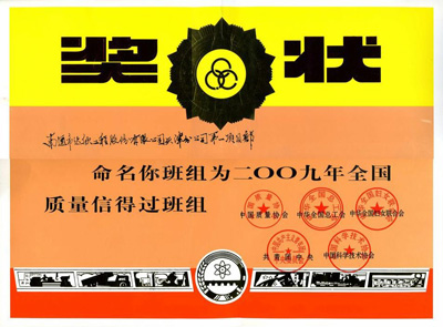 日前,在??谡匍_的全國第三十一次質(zhì)量管理小組代表會議上,我公司天津君臨大廈項目部獲得“全國質(zhì)量信得過班組”榮譽稱號。