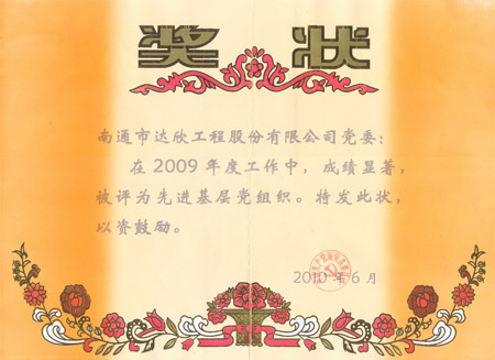 2010年公司成立黨委,在新一屆黨委的領(lǐng)導(dǎo)下,公司全體黨員積極開展創(chuàng)先爭優(yōu)活動(dòng),以“腳手架上黨旗揚(yáng)”為主題,將支部建在項(xiàng)目上,做到“關(guān)鍵崗位有黨員、困難面前有黨員、突擊攻關(guān)有黨員,黨員帶頭技改創(chuàng)新、帶頭攻堅(jiān)克難、帶頭建功立業(yè)”,充分發(fā)揮黨、團(tuán)、工會(huì)組織在施工生產(chǎn)和經(jīng)濟(jì)建設(shè)中的先鋒堡壘作用,促進(jìn)企業(yè)和諧發(fā)展。公司劉厚純、馬和軍、徐仁忠、徐桂壽等4人被海安工業(yè)園區(qū)黨委、胡集鎮(zhèn)黨委評(píng)為優(yōu)秀共產(chǎn)黨員。