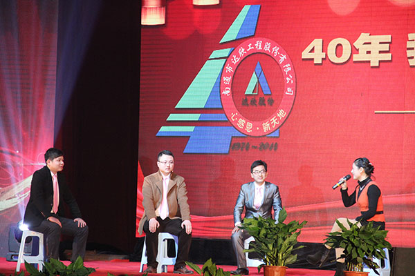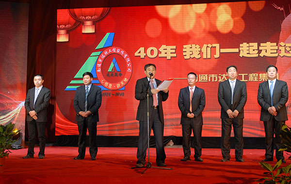 公司董事長馬和軍進(jìn)行了致辭答謝。他說在這樣一個(gè)特殊的時(shí)刻和一個(gè)特殊的地點(diǎn),我們正做著一件具有特別意義的事情。我們一起回顧達(dá)欣的光榮歷史,一起回味達(dá)欣40年來經(jīng)歷的風(fēng)風(fēng)雨雨,一起品嘗我們用勤勞和智慧的雙手?jǐn)€獲的豐收和喜悅。40年來,我們始終堅(jiān)持改革,并最終受益于改革;40年來,我們傳承并不斷發(fā)揚(yáng)光大著一種精神,這種精神的核心就是“艱苦奮斗,以身作則”、“團(tuán)結(jié)拼搏,顧全大局”、“凝心聚力,勇于爭先”;40年來,在達(dá)欣這個(gè)大家庭中始終洋溢著一種濃濃的情誼。站在達(dá)欣40年這個(gè)歷史新起點(diǎn)上,相信達(dá)欣的光輝旗幟,一定會(huì)更好地迎風(fēng)展揚(yáng)、高高展揚(yáng)、百年展揚(yáng);在熱烈的掌聲中,縣委書記陸衛(wèi)東發(fā)表重要講話,他指出,今天我們共同見證和分享達(dá)欣集團(tuán)四十年發(fā)展的成功和喜悅,作為縣內(nèi)的標(biāo)桿建筑企業(yè),達(dá)欣步入了公司歷史以來發(fā)展最快、榮譽(yù)最高、分配最多、貢獻(xiàn)最大的時(shí)期,他希望公司要進(jìn)一步深化改革,加快發(fā)展,高起點(diǎn)定位,突出重點(diǎn),好中求快,實(shí)現(xiàn)達(dá)欣集團(tuán)的新飛躍。