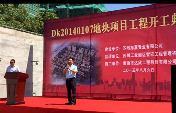 DK20140107地塊項目工程位于蘇州工業(yè)園區(qū)現(xiàn)代大道以北、星塘街以東,東沙湖路以南,琉璃街以西,建筑面積15.1萬平方米,由7-17層住宅以及地下人防車庫組成,該工程于2015年8月6日開工,計劃于2017年12月31日竣工。