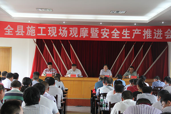 8月13日,全縣施工現(xiàn)場(chǎng)觀摩及安全生產(chǎn)推進(jìn)會(huì)在我公司舉行,縣建筑工程管理局賈伯根局長(zhǎng)、徐祥穩(wěn)書(shū)記、儲(chǔ)祥文副局長(zhǎng)、各區(qū)鎮(zhèn)建管站及全縣40多家企業(yè)的安全負(fù)責(zé)人和安全科長(zhǎng)參加活動(dòng)。